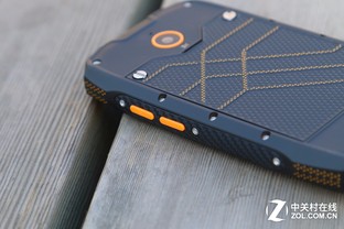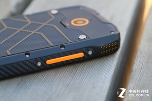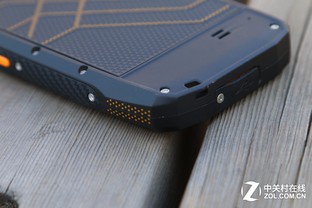 AGM Rio外观极具个性化,钻石纹理设计的电池盖板,不仅美观而且增加了握持摩擦力,机身各处覆盖的橙黄色点具有抗视觉疲劳的效果。 机身顶部的耳机孔和底部的micro USB数据口位置都有橡胶材质的保护盖,并用螺丝紧紧地固定在机身上,起到有效隔绝水汽尘土的作用。