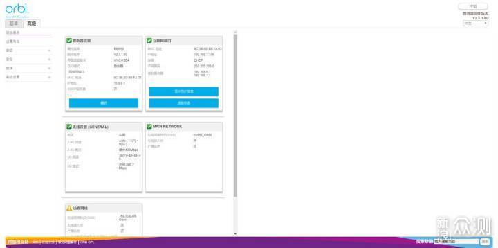 通过前面的路由器设置部分也基本有所了解,Orbi路由器的网页端管理面板偏向于专业化,界面设计比较简单但实际的隐藏功能却很丰富,但一定程度上给用户一种不太亲民的感觉,毕竟国内已经有很多擅长于UI的厂商也在开始向路由器市场发力。Orbi路由器的管理面板分为基本和高级两个模块选项,将常用的设置项做了归类,便于用户检索和寻找。大多数功能在一般的家庭路由器中都会经常见到,这里就不做过多的介绍了。