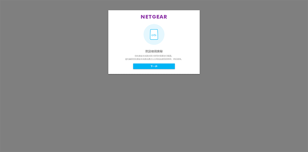 RBK50路由器主机通电后,打开Orbi手机应用进入网络配置向导,令人惊讶的是,安卓版本的Orbi应用的用户界面居然是全英文,一度让我这个英文小白摸不着头脑,于是我决定选择使用网页端管理面板进行配置。在电脑端使用网线或WiFi网络接入路由器,访问orbilogin.com进入网件RBK50路由器的配置管理面板,默认的WiFi名称/密码、管理员名称/密码在机身和使用指南均有提及。