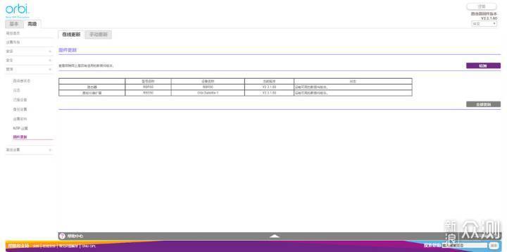 Orbi RBK50路由器会提供比较频繁的固件更新,通过更新固件来解决一些稳定性和功能性方面的问题,在管理界面中也提供有固件检测和更新的选项,建议及时检查固件并更新,以获得更稳定的体验。也可以下载固件文件包到电脑端,然后使用手动更新选项进行升级更新。 手机应用