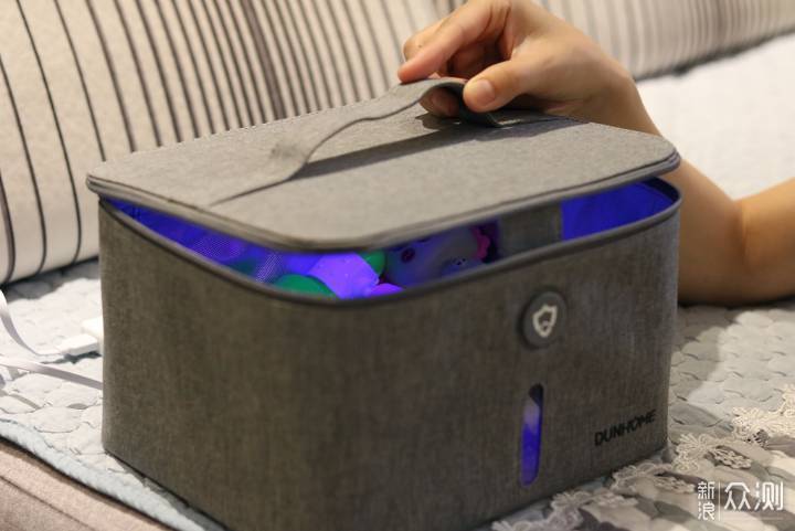 小盾多功能消毒箱采用米家的礼盒式纸箱包装,箱子上标印了产品外观造型以及“DUNHOME”的LOGO标志;箱子侧面是产品的功能、使用介绍说明。这款消毒箱包括两个颜色版本,精致布艺(灰色)和环保PU(粉色),作为送给亲人朋友的小礼物来说,比较有实用意义。