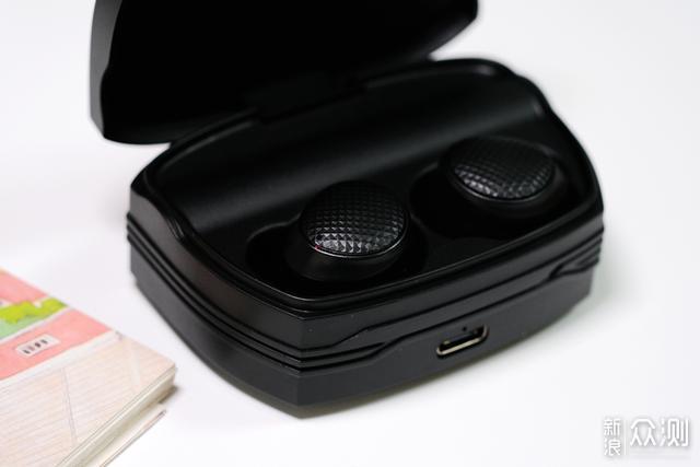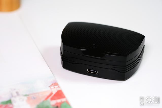 和我以前用过的TWS充电盒比较起来,aigo T08的充电盒会相对大一些、重一些,黑色外壳采用的是塑料材质,盒盖做了菱形格处理,看上去会更有档次。充电盒之所以大是因为它内置了2500毫安锂电池的关系,要知道目前市面上大多数TWS配备的充电盒电池容量都不超过500毫安,所以在体积方面做点让步,换取更长的续航时间,还是可以理解的。不过也不用担心,它依旧很小巧便携。