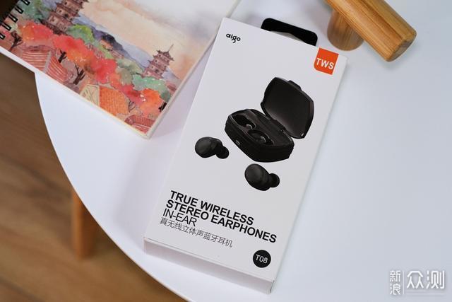 aigo T08的包装简洁时尚,白色纸盒正面上印有产品的渲染图,一行“真无线立体声蓝牙耳机”标明了它的身份。