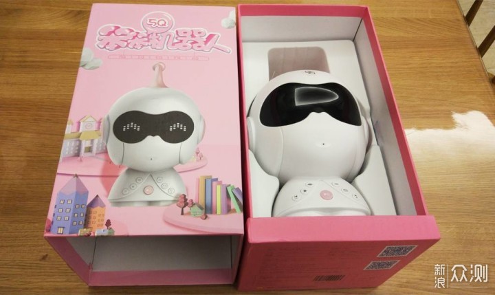 怀着无比鸡动的心情,收到了我女儿的礼物,嚯!好大一个包装的很严实不容易被压坏,采用抽拉式的包装。从外包装来看,采用了大硬盒全彩包装,整体体积比较庞大,正面是产品的高清大特写,非常的萌,机器人是微笑的表情,好像在说:“以后你就是我的主人了”底部是主要是详细的各项技术的介绍。内盒就是5Q机器人的本体了,有三色黄、蓝、份色,我收到的刚好是粉色的,我女儿非常喜欢。固定机器人的塑料盒非常坚固,主要配件有说明书、数据线,充电头可以用手机的充电头(5V1A)。5Q机器人本体尺寸为240*138*145mm,大小刚刚好,材质用ABS塑料件为哑光。(很坚固,跟米兔一样耐摔),头顶的角是食品级接触级硅胶(不怕小朋友撕咬,安全无毒)通过国家标准检测安全放心使用,整体做工优秀,没有毛刺、没有尖锐的角或者边。网络:WiFi2.4G(无需5G够用就好),整体重量为552G,我3岁的女儿能轻松抱起。整体看起来有一种萌萌的科技轻奢的视觉感。