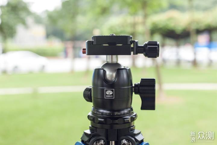 -最后说说云台-B-00K云台球形是搭配在脚架套装中的,其底部带有360水平刻度,可以进行全景接片。不得不提的是相对一般的阻尼调整旋钮,这款云台采用的是大调节扳扣,调节起来更方便轻松。由于云台是金属材质,所以重量还是有的。脚架搭配云台后,重量可达0.758KG。