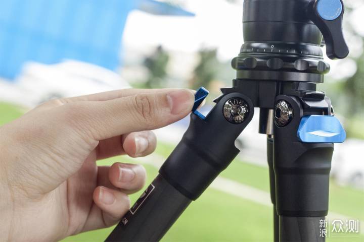 -3档角度-与思锐其他脚架的半自动脚管按钮相比,这款脚架采用了扳扣设计,把扳扣打开后即可调节角度。