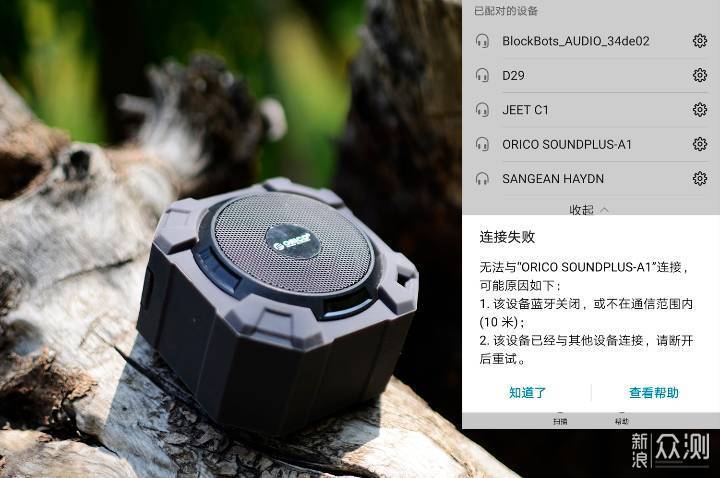 连接与音质A1与音源的连接也非常简单,按下电源键,A1会有开机的声音提示,同时开关内部的蓝色指示灯会闪烁,提示可以进行蓝牙配对。此时打开手机等设备的蓝牙,刷新搜索一下就会出现ORICO SOUNDPLUS A1,点击按提示操作即可实现连接。
