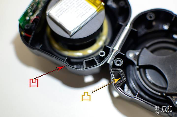 壳体为工程塑料,本身强度和韧性都不错,适合户外使用。两片壳体的接缝处,一面凸一面凹,刚好配合起来,一方面配合严密、形成更强的密封效果,另一方面也能防止声波发散,带来杂音。
