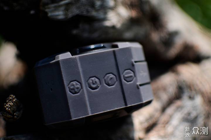上方硅胶套压模有四个按键,从左到右分别为音量加(长按前一曲切歌)、电源、电话(长按挂断电话)、音量减(长按下一曲切歌)。得益于硅胶自身的摩擦感,按动各个按键手感比较舒适,内部的机械开关按动到位手感反馈清晰。两侧切角分别是充电口和MIC音孔。
