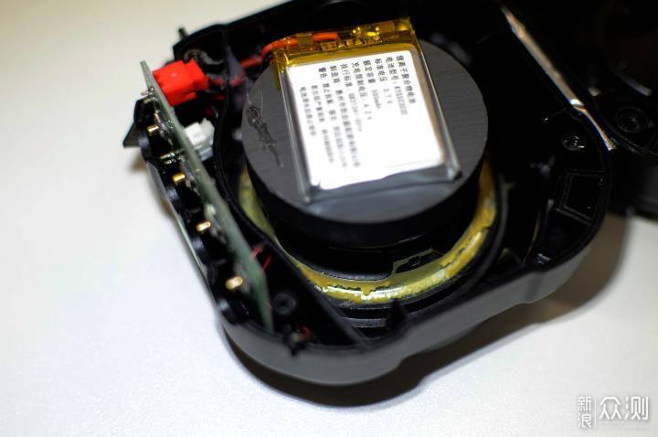首先映入眼帘的就是这颗电池,由胶固定在磁铁背面,这是一块聚合物锂离子电池,比我预想的18350圆柱形锂离子电池要更加安全。