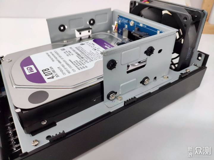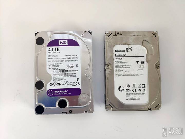 买了两块WD红盘4T硬盘,因为活动断货,是预定的,还没有收到,所以拆了两块老硬盘放进去看看是否能很长工作。一块WD紫盘4T,一块希捷1TB。