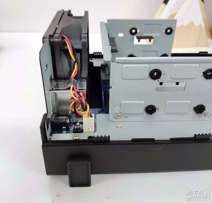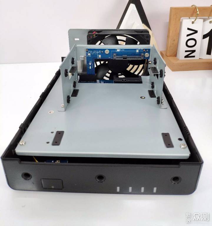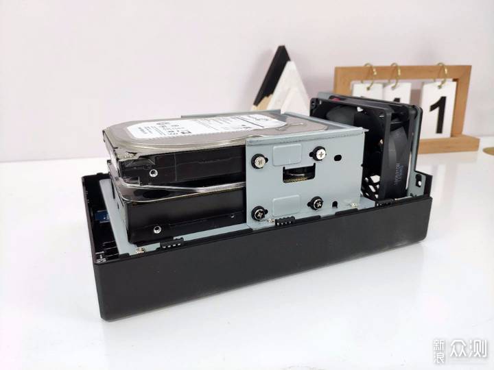 两块硬盘之间有一定的距离,方便通过后置风扇散热。