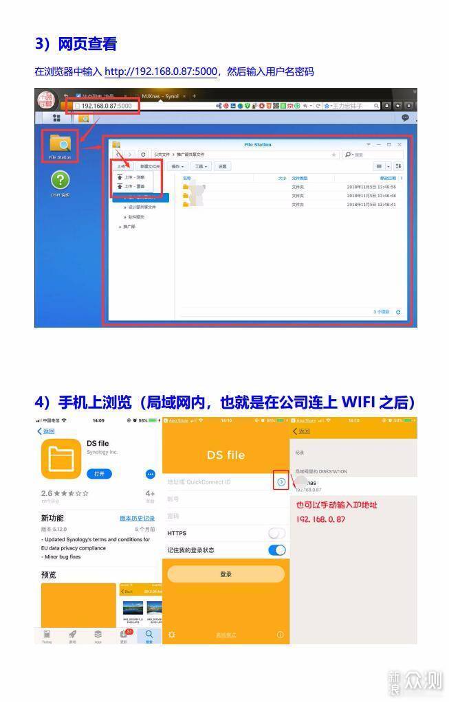 如何访问群晖文件服务器?因为公司的使用者都是小白级别的,所以我做了一个说明书发给他们,教他们如何使用,包括外网手机远程访问。