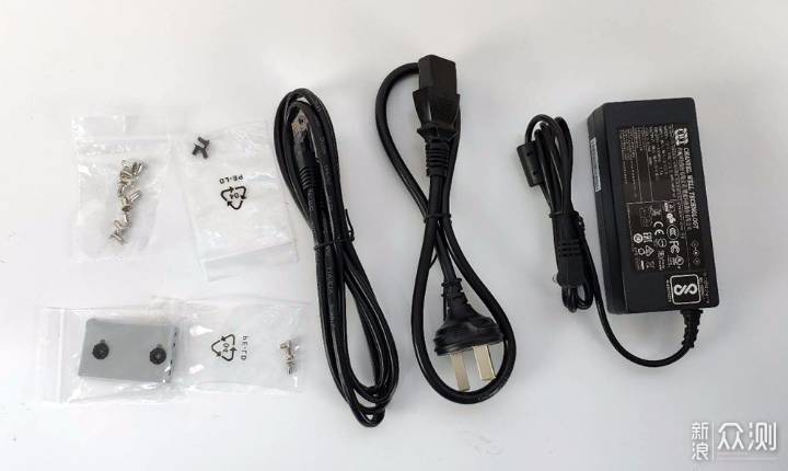 除了网线电源线外,还有两种型号的螺丝,3.5寸硬盘螺丝和2.5寸硬盘螺丝及配件。