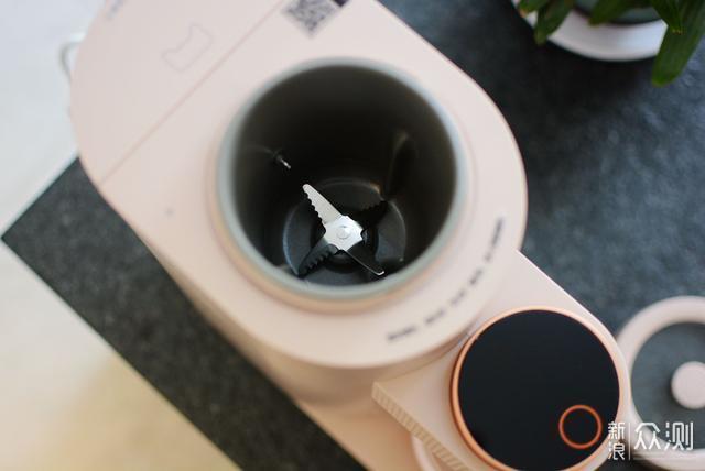可以看到,内部的研磨腔设计了四叶的研磨刀。虽然研磨腔的体积很小,不过依然支持干豆、五谷、水果等,轻松制做想要的饮品。