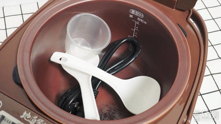 锅内带有1.2米长三脚电源线,一把塑料汤勺及一把饭勺,还有一个小量杯。