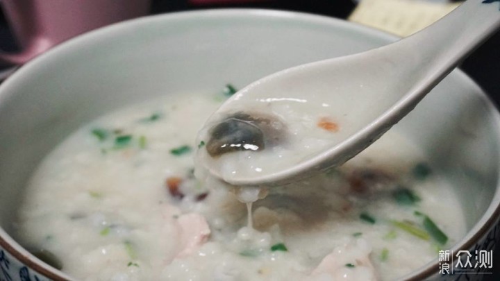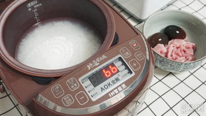 饭要是煮得好,煮粥应该也会有不错的表现。少量的米加入适量水,选择熬粥模式,等待25分钟之后,生米已经煮成粥。没有米饭那么浓烈的香味,米粒的味道都融合在粥水中。放入皮蛋和瘦肉,再搅拌捣碎和粥融合。选择再加热模式,等待15分钟加热,再次沸腾开锅。