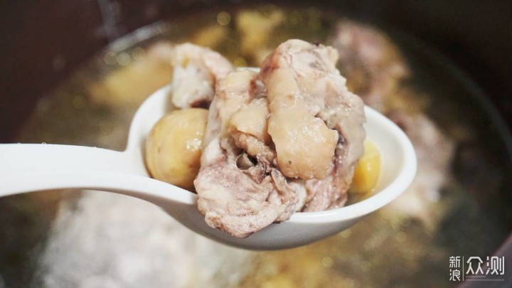 经过45分钟的熬煮,金黄色的鸡汤出品完成。让我感到惊喜的是,鸡肉经过长时间的加热之后,依然保持鲜嫩的口感,板栗软绵香甜可口。在土锅釜中翻滚沸腾,保留了原始的美味,充分发挥了食材的价值,家人都很喜欢吃这道汤。