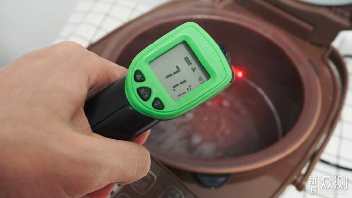 对电饭煲有一定的了解之后开始清洗一遍,在用清水蒸煮一遍,使用超快煮模式,锅胆内装至低水位,高温全面蒸煮。煮了10分钟左右,测量锅内壁温度为71.1℃。再盖上锅盖加热十分钟,测得锅壁温度为90.1℃。最终经过33分钟,完成超快煮,整个蒸煮过程,可以看到蒸汽孔不断有热气冒出,有几个小水珠挂在边缘。在开锅的瞬间,还是可以看到锅内充满气泡体,并保持沸腾状态。