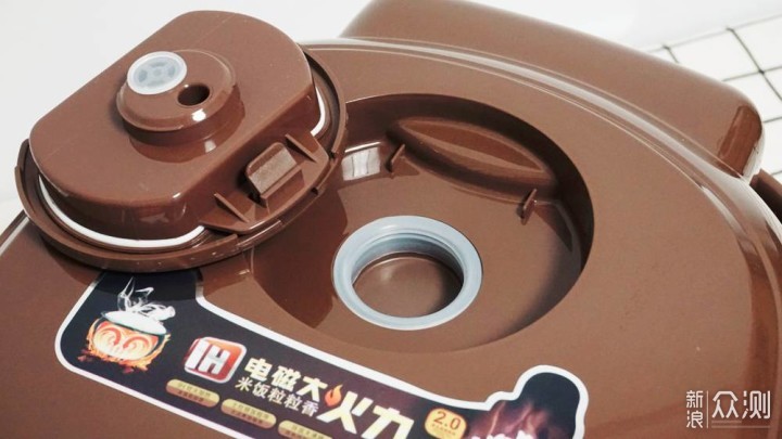 顶部中间位置设计有银色圆形开启按键,按下后锅盖弹起。盖子内部顶面密封胶圈被固定,不可直接取出清洗,内胆密封盖可以整体拆卸下来。盖子带有三环圆形凹点,在锅内起到水蒸汽循环作用。中心凸起一块,带有气孔设计,经过几道弯曲路线,连通道外部的蒸汽孔,防止溢锅的烦恼。锅盖处设置了温度探测针,能够时刻侦测锅内的温度。值得一提的是,密封盖安装块与顶部盖子卡扣联动,在没有安装密封盖的条件下,会合不上顶部盖子,避免了不必要的意外发生。
