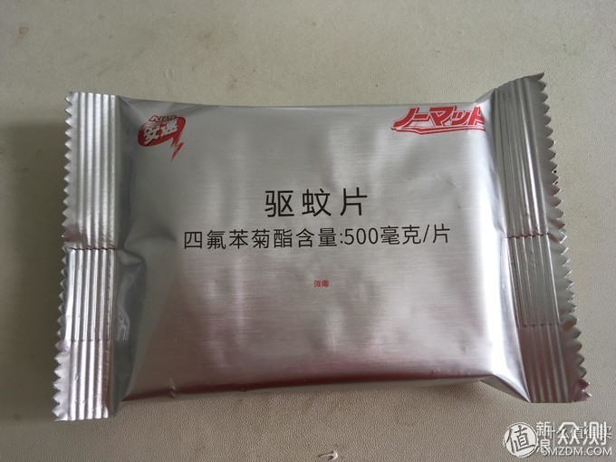 驱蚊片正方面包装:有名字和药物成分介绍。