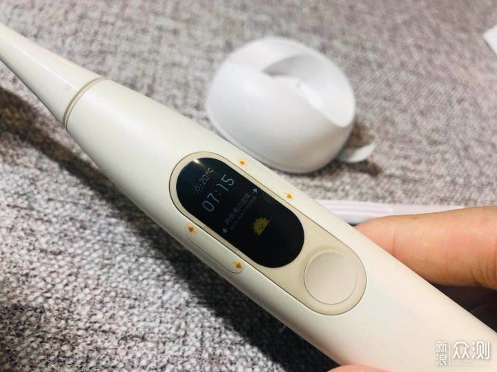 ②悬浮磁吸收纳,更美观节省台面空间。 ③内置陀螺仪,8分区刷牙盲区监测,记录每次刷牙数据并打分,可帮助改进刷牙姿势。 ④可自定义刷牙时长、力度等参数。 ⑤配备可触控彩色显示屏,功能丰富,虽然我觉得实用性没有App好,但是看上去更高级。 缺点 ①米色的机身外观个人不喜欢,看上去不干净。 ②应增加机器标识,以便单个家庭有多款机器时如何分辨机器归属。 ③充电器没有适配器,充电较麻烦。 ④屏幕保护贴的残胶问题需改进。 ⑤最好能将App整合进米家App。