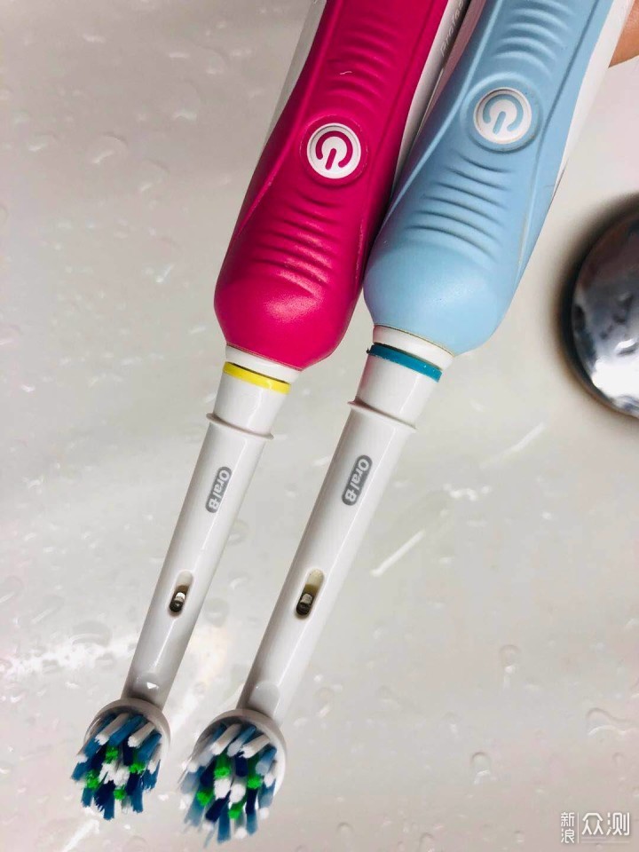 还想给厂家提个建议,由于机身和刷头并没有颜色区分,那么比如我和老婆买了两个,现在是无法进行识别哪一个牙刷才是自己的。 欧乐-B是在刷头上设计了标识环(单独的零件,换刷头时安装在刷头上),下图黄色和绿色部分,这样就很好区分了。