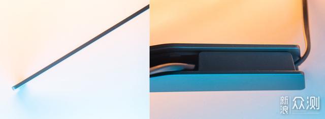 屏幕支架前段非常的纤细,方便回音壁音响的放置;支架后方采用可收纳各种多余线的设计。