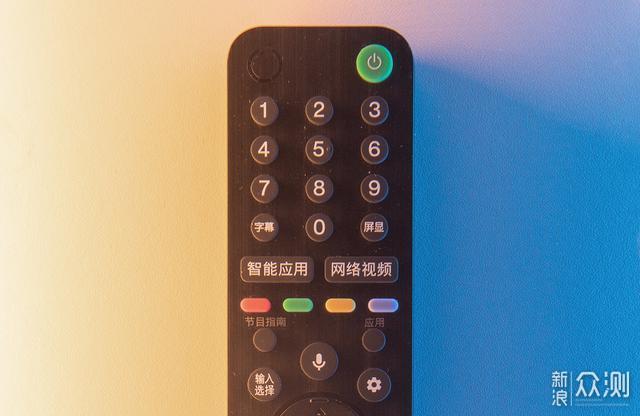 遥控器纤细狭长,正面同样是采用拉丝的处理工艺充满了高级感,背后采用与电视机后背一样的颗粒工艺,摸上去有很好的手感。