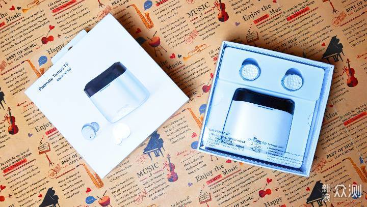 外观很高兴能够体验到这款派美特Padmate Tempo T5 TWS耳机。耳机的外包装诺大盒子、一身洁白,包装正面能够概览这款耳机的基本面目。