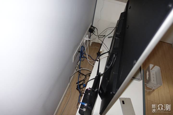 Home Assistant的博联插件虽然已经支持了博联的大部分设备,却不支持这个MP2排插。不知道是为什么,感觉这个插座出了挺久了。所以,就没法借助于Home Assistant使这个博联智能排插MP2玩出更多花样了。 收纳盒排插合体上面分别简单介绍了网易智选收纳盒、博联智能排插MP1、博联智能排插MP2三款产品,接下来就要将他们组合起来使用了。在使用之前可以先看一下电视机柜后面的插座和电线。估计大多数家庭的这个部位都像这般凌乱。好在一切都可以隐藏在电视机柜后面,眼不见为净。但是如果插座数量不足,就要想办法解决问题了。