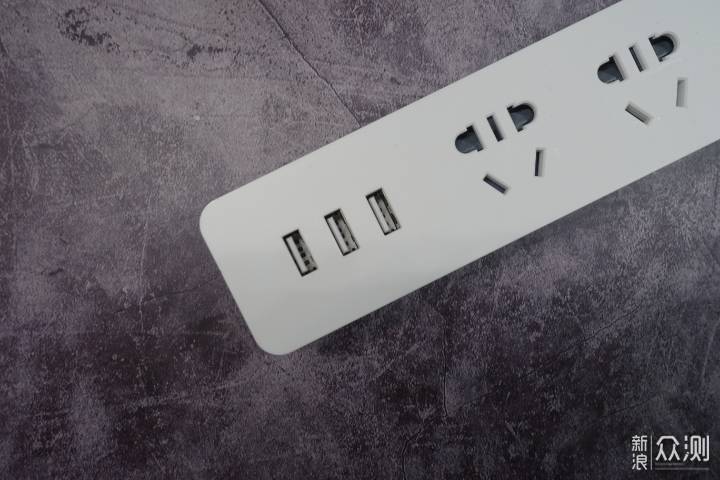 排插上提供三个USB充电口,这样就能够节省USB充电器的使用了。USB充电口的最大充电电流是2.1A,总共提供3.1A的输出电流。多个设备一起插到三个USB口上的话肯定会分流的。所以,多个USB供电设备同时使用的话,为了保证设备稳定运行,要注意设备的额定电流。对于额定电流比较高的设备,还是建议单独使用充电器插到AC插座上供电。
