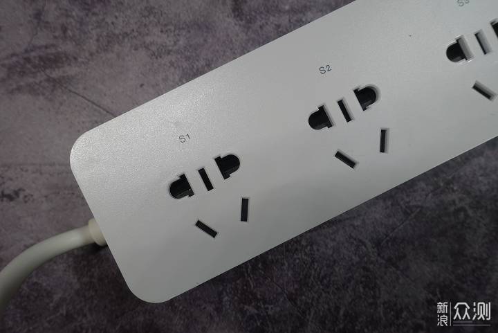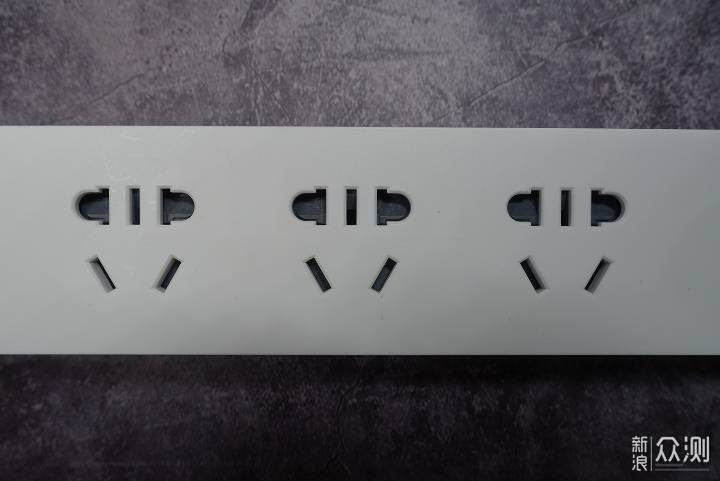 排插上有三个普通的AC插座,每个插座间距45mm,保证插头之间互不影响。
