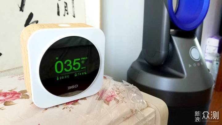 用360空气检测大师来实际测量一下,先在封闭的房间里测量空气中PM2.5值为35,然后开启风扇半小时净化后PM2.5值为5,由此可以看出空气质量可以有一定程度的改善。这个测量我已尽量客观了,不过这是根据个人习惯来体验的,再加上夏季空气质量较好,所以对测量结果并没有太大影响。如果长时间使用安美瑞无叶风扇的话,会起到净化空气的作用。