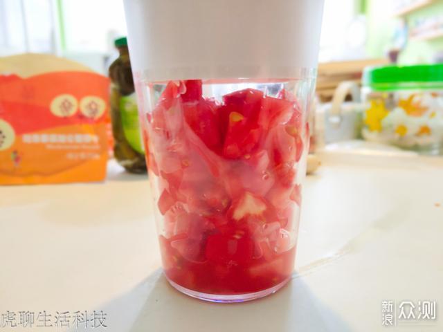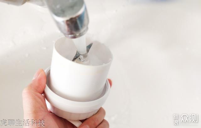 拧好之后,按动开关2次,开始启动了,刀头旋转。这个时候只需要翻转机身,那么就可以看到,小块块瞬间打成水了。
