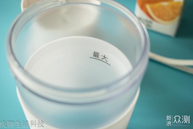 往杯体内测看,有个最大的字样和横线,代表放入东西的高度不能超过这条线,这也是为了保证榨汁机的安全。