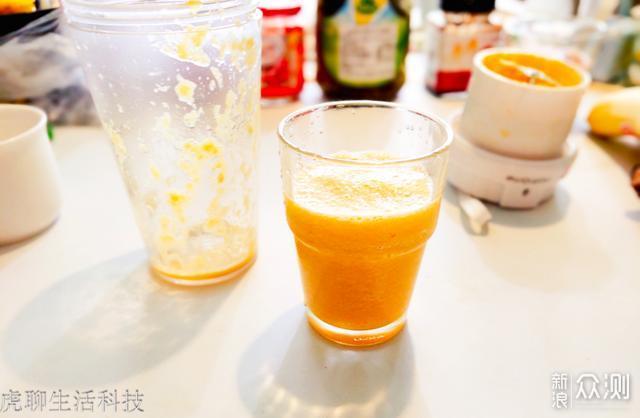 然后就拧开盖子,不到一分钟,一杯果汁就打好了。