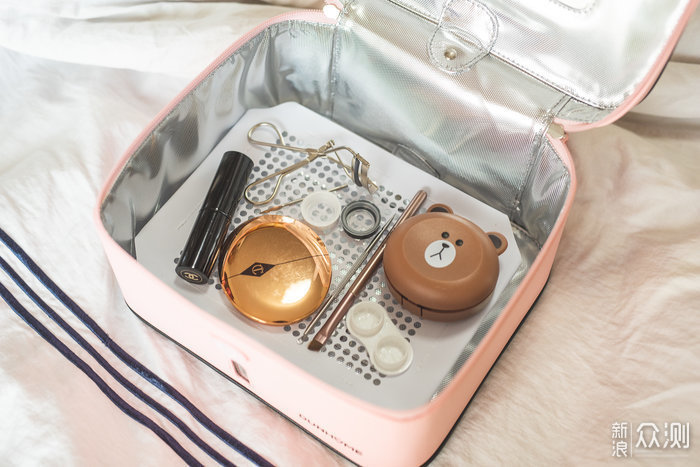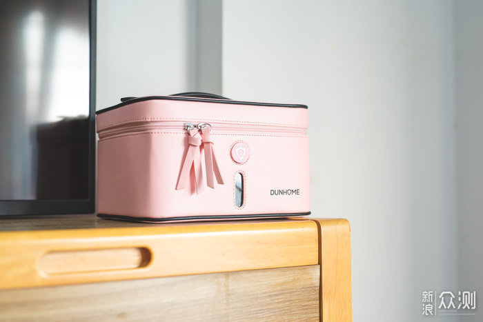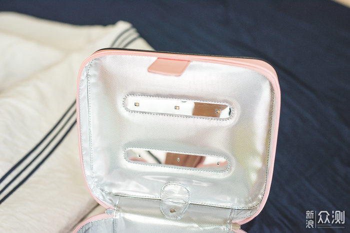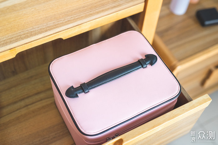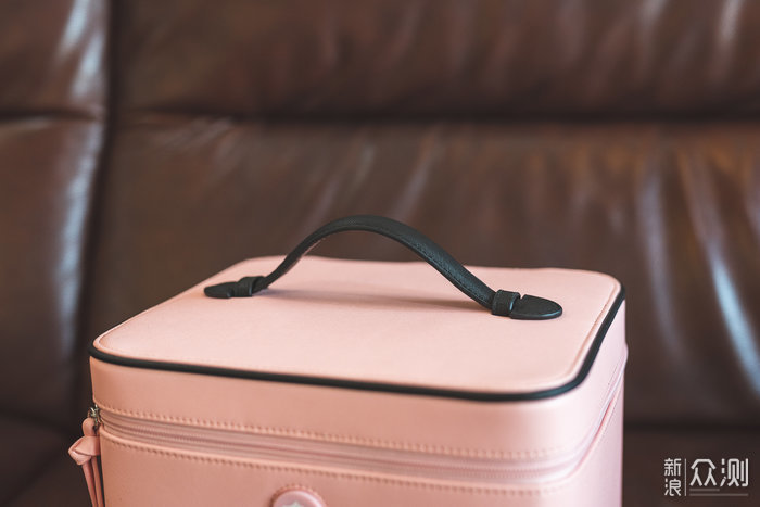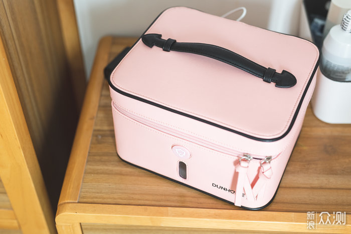 随身可带的便携目前这个箱子有粉色、灰色两种颜色版本,因为是给女票用的自然选了粉色。初看消毒箱大小比化妆包要大一些。粉色外观看着还是蛮Q的。