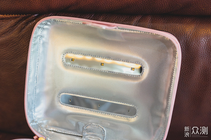 UVC灯珠一共18颗,对于这么大的消毒箱来说应该算挺多的。不明显的就是内部的负离子发射器跟碳纤维加热,这样三重消毒的组合来实现99.9%的杀毒率跟内部干爽。