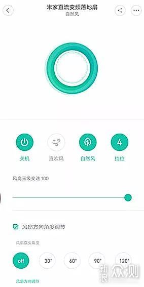 而左右摆动的幅度达到了140°,在大客厅或者人多的场合也能应付自如。 实际使用感受米家落地扇1X共有4个档位,两种吹风模式(自然风和直吹风),由于采用了变频无刷直流电机,在手机App上还能无极调整风力大小。 经过特制的7扇叶,结合电脑芯片模拟的无规律自然风,吹风体感非常棒,而且噪音其小。 在1挡和2挡之间,哪怕走的比较近(1.5米内),也会很容易忽略这台落地扇在工作。3挡和4挡的风量也足够可以照顾到6米远的距离(我家客厅对角的直线距离,这是我家使用场景里最远的距离了)(官宣最远14米)。 无规律的自然风你吹过之后是明显要比直吹风要舒服的。而App和小爱同学的加入,使得使用上更加的方便和智能化。