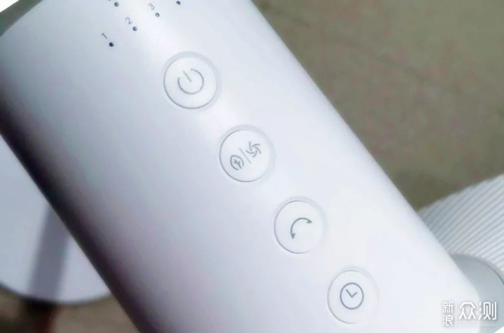 由于高度比一般的落地扇要小,设计师把开关按钮集成在风扇的顶部,操作时不需要弯腰,而且一目了然。这是个可以加分的设计点。