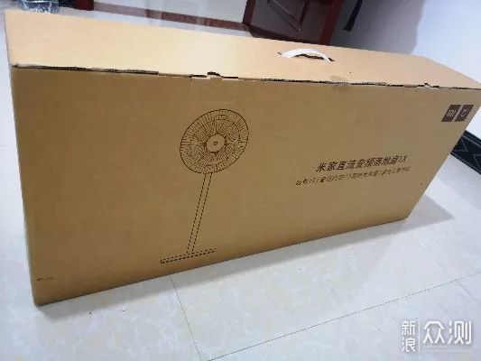 长条形的牛皮纸包装,看着挺大的一个家伙,上面是产品名称和示意图,一如以往的简约风格。▲ 而女王大人收到货后第一时间给我打电话,说一只手就轻轻松松拎回来了,感觉里面是空的,问我是不是发错东西了??我也是一脸懵逼,在再三确认包装完好标识没错(那么大个落地扇的图案也错不了)的情况下,顺利签收。