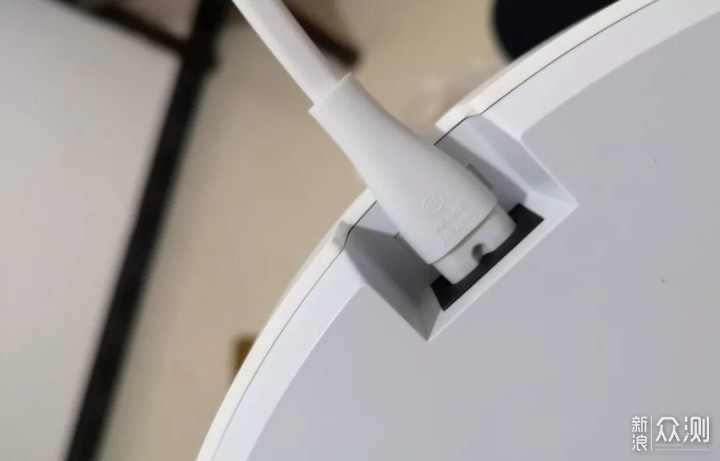 一个小细节:电源线和底座采用了分体式设计,并且为半隐藏式的凹槽设计,兼顾了美观和实用性。