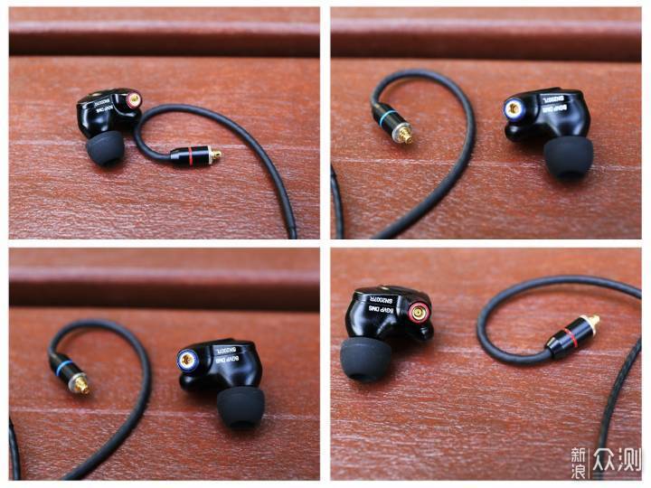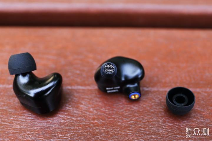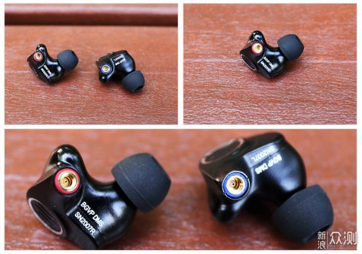 BGVP DMS耳机采用MMCX可换线设计,在耳塞的部分,可以看到镀金的MMCX线接口。为了区分左右,分别采用红色和蓝色进行标识。蓝色为左侧,红色为右侧。耳塞整体为黑色,表面光滑。在耳塞上白色的产品型号BGVP DMS及序列号。DMS集成了专业的电子四分频发声方案,让耳机内的1圈6铁分别发挥不同的功效,三频分离度很高,层次明晰,又互相衔接,过渡自然。集成的一颗楼氏SWFK-31736复合双动铁单元,用于处理高频和极高频,使得声音具有极好的延伸性,非常通透。而两颗专为BGVP定制的DEK-60318复合双动铁,是从30017优化而来,大幅度提高了人声的密度,降低失真的谐波,与高分子纳米材料的复合振膜动圈单元,共同处理中频和低频,高分子复合振膜的低频弹性好,下潜深,高性能N52磁铁,让声音更具澎湃动力,CCAV音圈+镀金金属屏蔽外壳,让声音更加自然,真实。配合3D打印支架结构,合理布置声学单元的位置,降低了失真度,谐波更低,让耳机整体更加稳定。