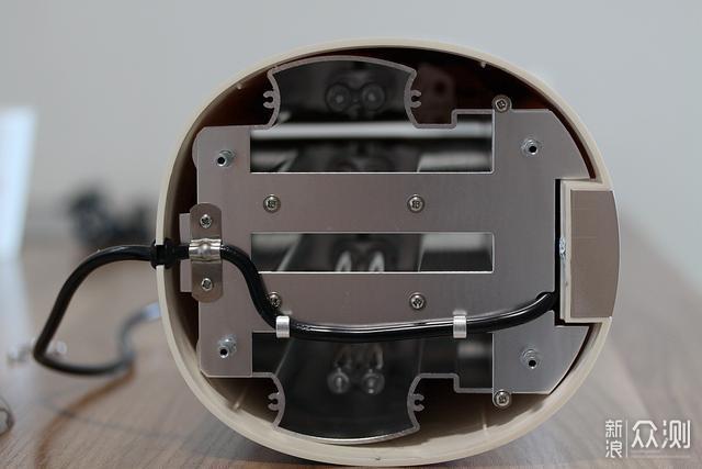 外壳采用ABS阻燃材料喷漆上光油,内腔体采用的是2mm厚度的铝合金整体冲压,整体冲压的效果比起拼接的好很多。