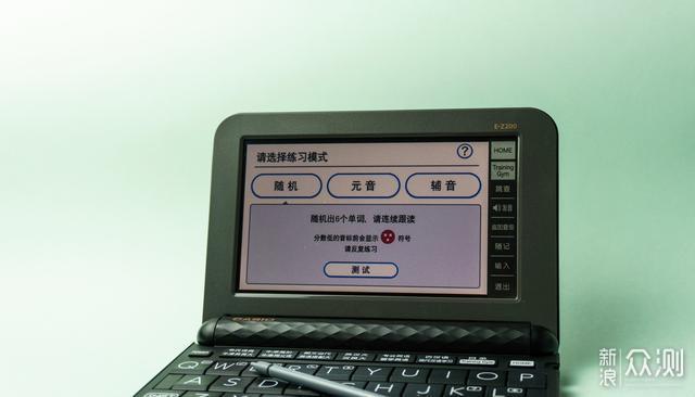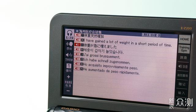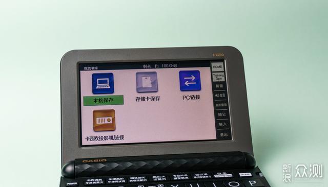 卡西欧电子辞典E-Z200BK采用5.3寸的WVGA彩屏,可以调节5个亮度等级。其中右边一排触屏菜单是不会变化的,固定为HOME、Training Gym、跳查、发音、追加查询、随记、输入和退出。 主要功能测试首次开机时会有语言与时间设置。这里就不展示了。 卡西欧电子辞典E-Z200BK开合有些紧,翻开后会自动亮屏,并跳到主菜单页面。值得一提的是,卡西欧电子辞典E-Z200BK支持180°的开合。