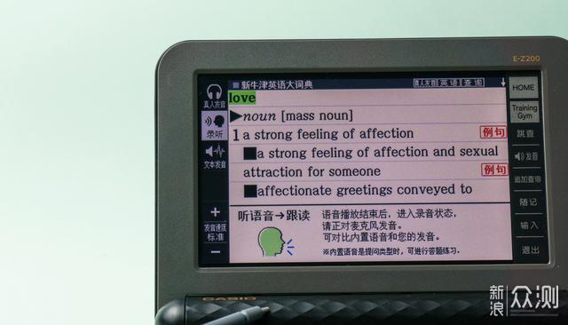 我们都知道电子辞典除了查单词外,必定还会支持单词发音。而卡西欧电子辞典最具特色的一个功能是,支持录听跟读。简单说,就是利用内置的麦克风进行收音,然后与机器的内置朗读进行对比,再进行评分。对于想纠正发音的小伙伴来说,这也算是一个不错的方法吧。另外,卡西欧电子辞典内置的都是真人发音哦。