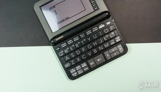 卡西欧电子辞典E-Z200BK自带大尺寸一体式键盘。键盘可以分为3个区域。最上方一排为词典快捷切换区,中间为字母输入区,下方为功能键区。键盘为26英文字母的键位设计。很有意思的是,键盘的QWERT标有拼音的声调输入。