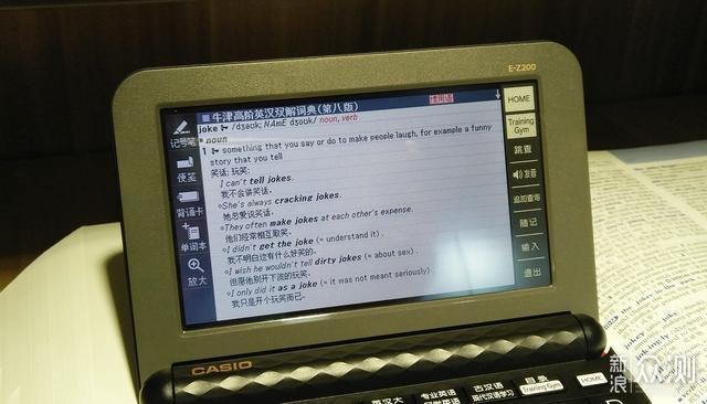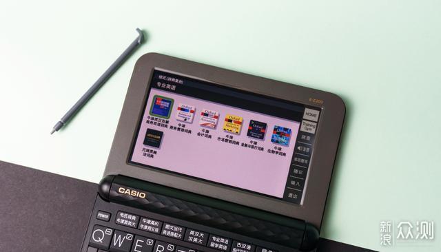 作为一个从事英语教育行业的人员来说,常听到老师对学员说的话语是:1.今晚把这5篇单词给背了。2.你的发音需要纠正一下。3.这个单词还有另一层意思。4.五分钟后听写。5.XXX,上来翻译一下这篇短文……英语学习真的很艰苦,没有任何的捷径可以走,词汇的累积是个永远绕不过的坎。 此次就与各位分享一个英语道路上的学习利器--卡西欧电子辞典E-Z200BK。 希望这篇简测,可以在您今后的英语学习或留学道路上起到一丝作用。 电子辞典外观卡西欧电子辞典E-Z200BK(以下简称卡西欧电子辞典)的包装相当中规中矩,感觉好像几年以来都没有多大变化。普通的纸盒包装,正面一个电子辞典的展示图。单看包装,你并不会感觉这是2000多的产品吧。