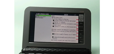 你以为卡西欧电子辞典E-Z200BK只到这种程度吗?那她就不是卡西欧了。 当我们点击目录时,会进入到辞典的总分类。里面分为英语综合、英语学习、专业英语、汉语、文学·演说、留学英语、英语会语和词汇共计8个目录。每个目录下均设有不同的辞典。比如英语综合目录中,就收集了包括英语大词典、汉英大词典、牛津高阶英汉双解词典、朗文当代高级英语辞典、柯林斯COBUILD英汉双解词典、韦氏英语大学辞典和新牛津英语大词典。而汉语目录则为新华成语词典、唐诗三百首等。粗略计算应该有共80多本左右。